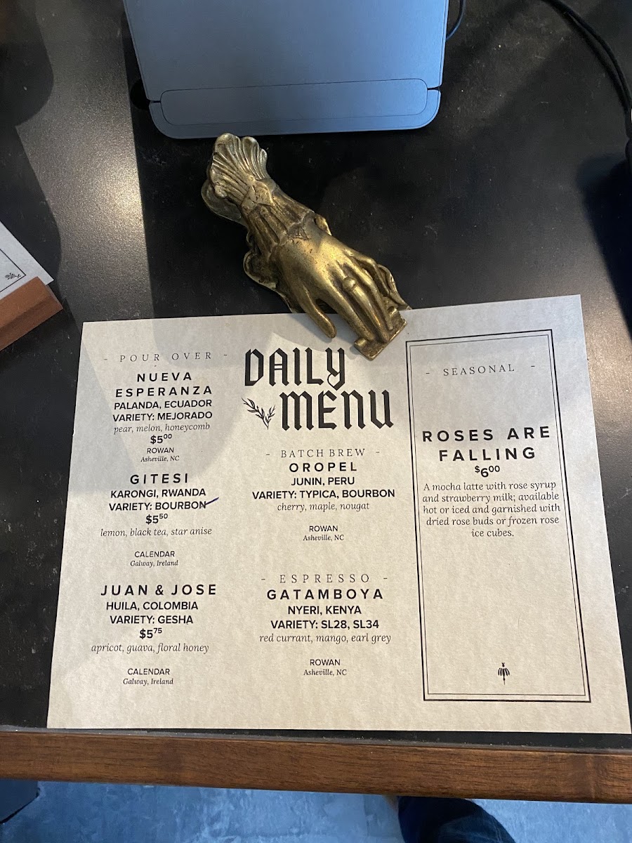 Welcome to Rowan Coffee, your new favorite coffee spot in Asheville, North Carolina, located at 66 Broadway St. Rowan Coffee offers an inviting ambiance adorned with warm wood furnishings and Gothic arches, creating a moody, vintage atmosphere perfect for relaxing with friends or enjoying your favorite brew.